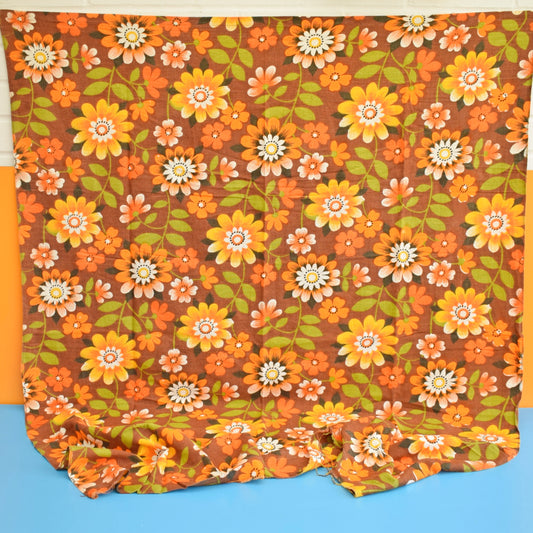 Vintage 1960s Barkcloth Fabric - Flower Power - Orange