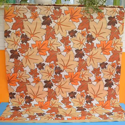 Vintage 1960s Large Roller Blind- Autumn Leaves - Orange