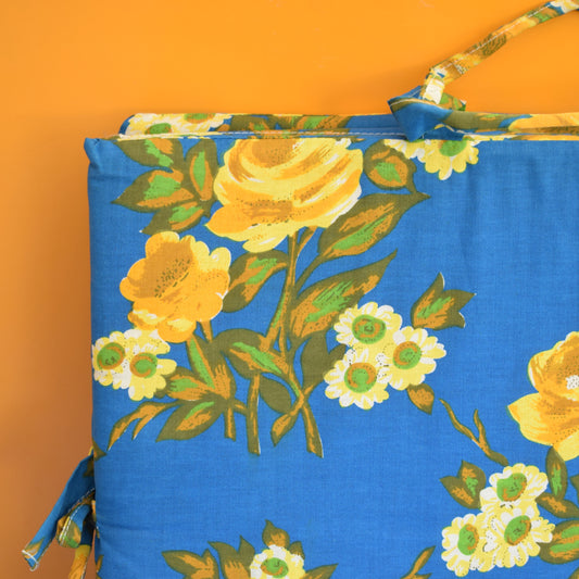 Vintage 1960s Padded Long Folding Cushion - Blue & Yellow