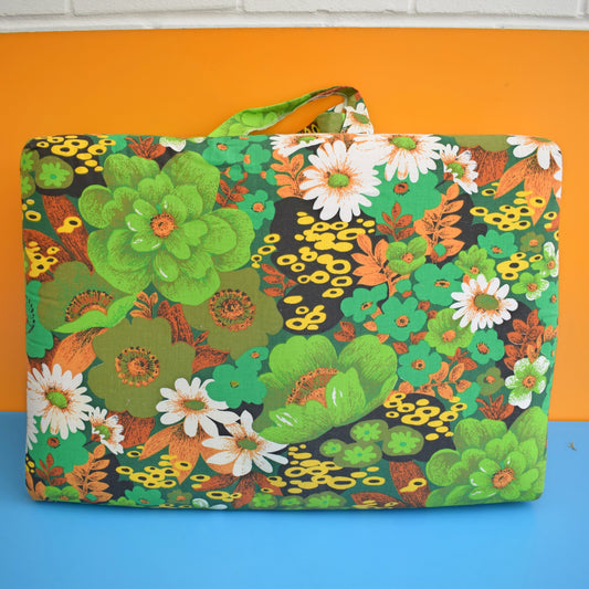 Vintage 1960s Padded Long Folding Cushion - Green Flower Power