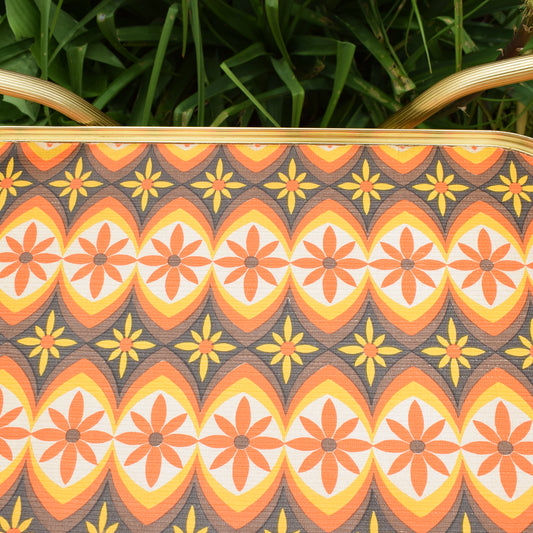 Vintage 1970s Garden Sun Lounger - Orange & Brown Flower