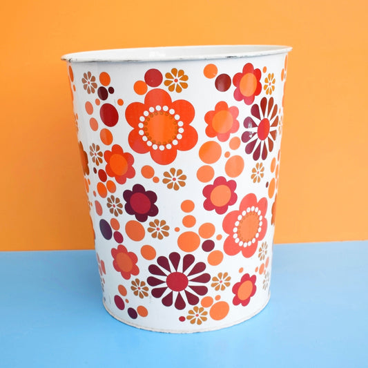 Vintage 1960s Metal Waste Paper Bin - Worcester Ware, Orange Flowers