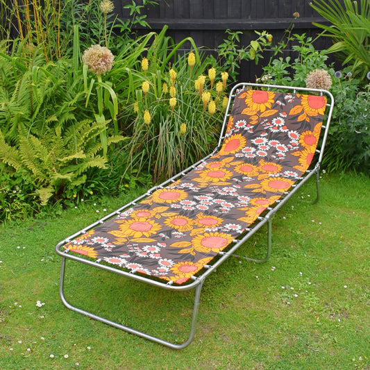 Vintage 1970s Garden Lounger - Orange & Brown Flower