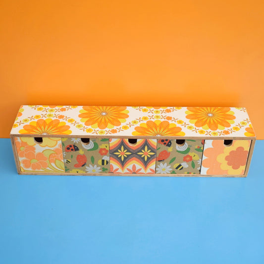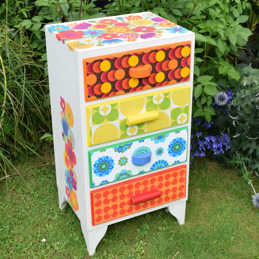 Retro Wooden Multi Drawer Unit - Vintage Wallpapers - Patchwork .