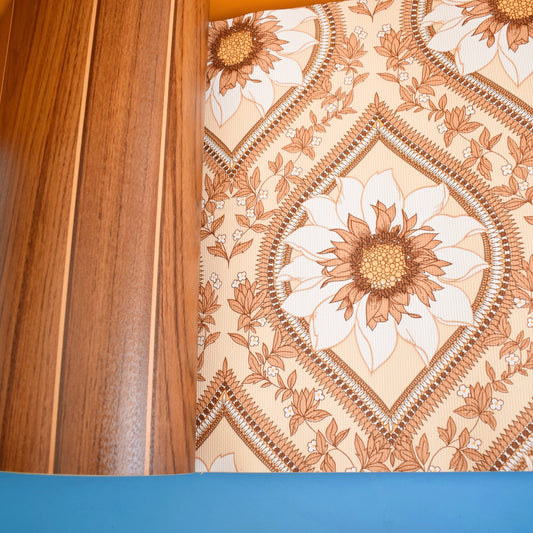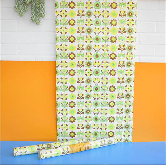 Vintage 1960s Wallpaper - Green/ Brown Flower