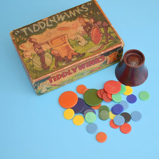 Vintage 1940s Mini Games - Pin U Right , Tiddlywinks , Blow The Bloater