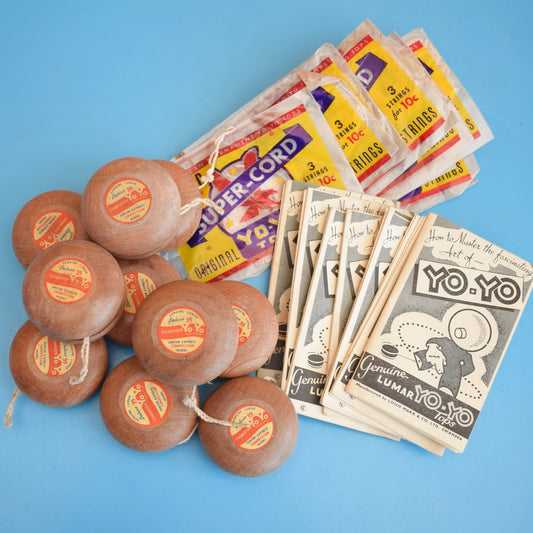 Vintage 1950s Amazing Wooden Yo-Yo, Trick Book & Strings