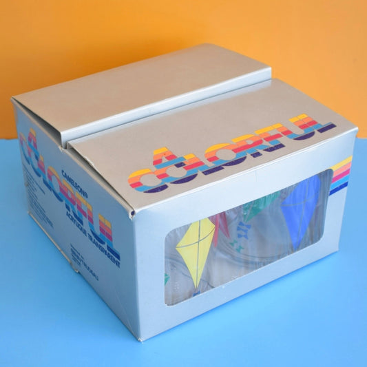 Vintage 1980s Plastic Drinking Glasses - Boxed - Bright Kits Designs