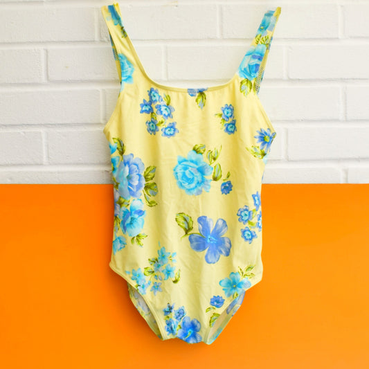 Vintage 1970s Swimming Costume - Floral Blue - Uk 12-14