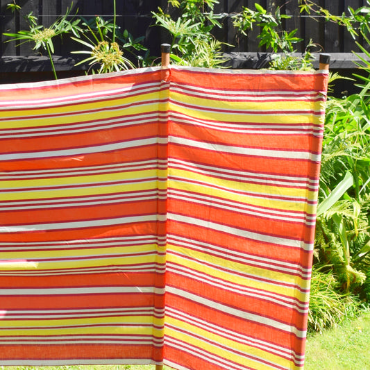 Vintage 1970s Wind Break - Coral Pink / Lemon/ Orange Yellow Stripes