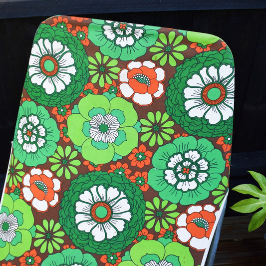 Vintage 1970s Garden Sun Lounger - Green / Orange Flower Power .