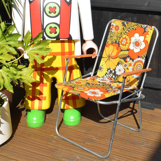 Vintage 1960s Folding Garden Chair - Flowers- Orange & Yellow