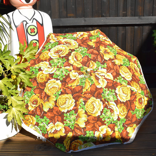 Vintage 1960s Garden Parasol - Flower Power - Yellow & Brown