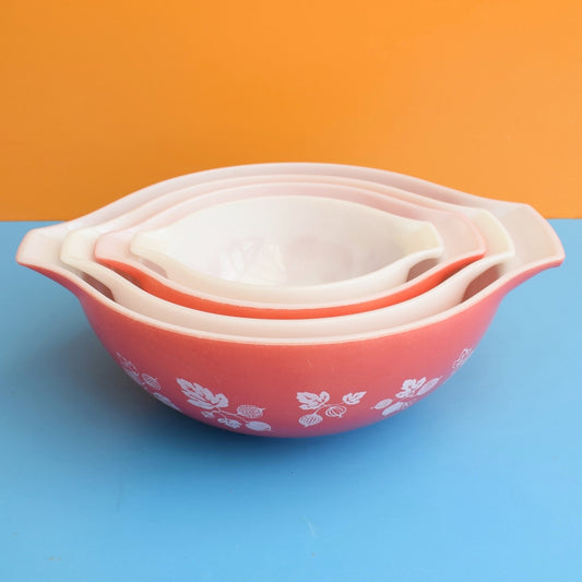 Vintage 1960s Pyrex Mixing Bowl Set - Gooseberry - Coral Pink/ Red