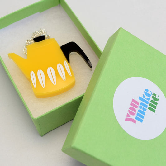 Retro Acrylic Brooch - Cathrineholm Style Coffee Pot Design, Yellow