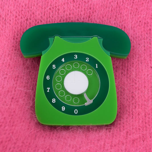 Retro Acrylic Brooch - GPO Style Telephone Design Green