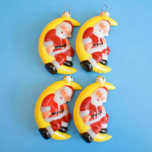 Vintage 1980s Plastic Santa & Moon Decorations x4