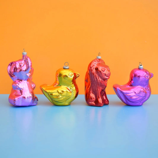 Vintage 1970s Kitsch Christmas Animal Decorations x4