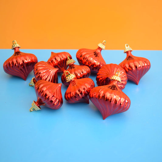 Vintage 1990s Christmas Plastic Decorations x10 Red - Onion Shaped