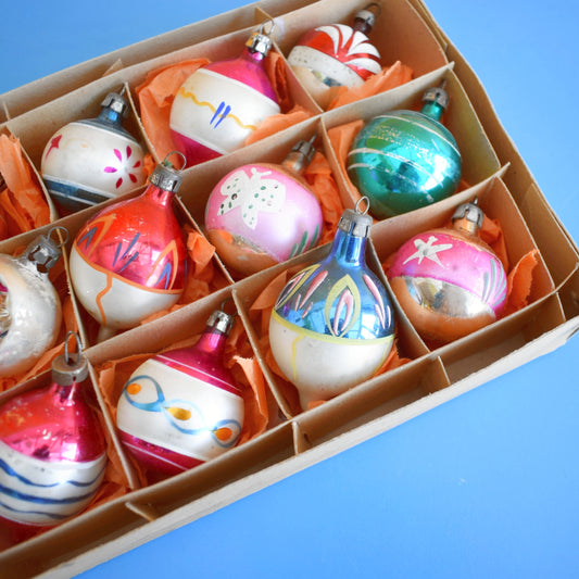 Vintage 1960s Glass Christmas Baubles - 12 Small - Boxed