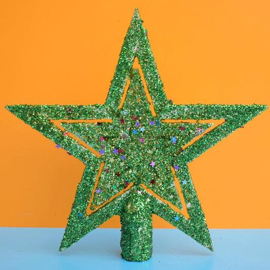 Vintage 1980s Glittery Christmas Star / Tree Topper Decoration - Green