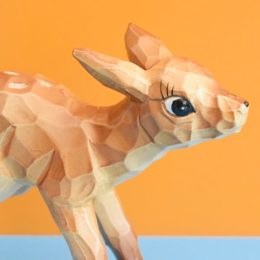 Vintage 1960s Bambi Kitsch Ornaments - Ceramic Deer - Wood Effect