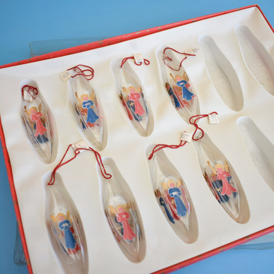 Vintage 1980s Fine Glass Droplet Christmas Baubles - Hand Painted Angels
