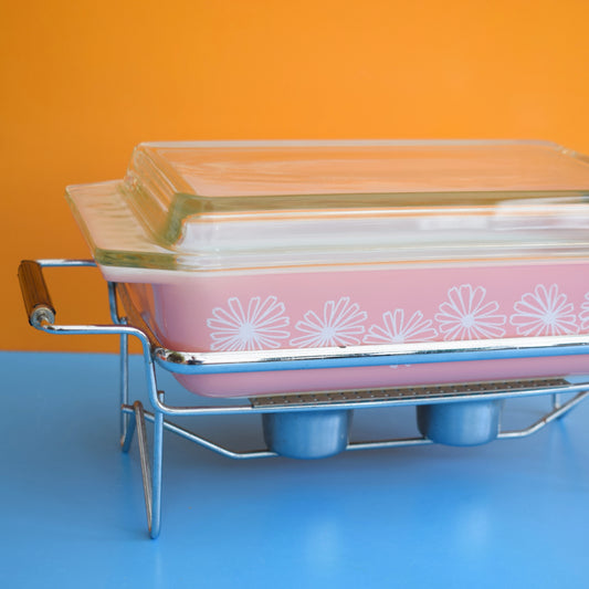 Vintage 1960s Pyrex Daisy Deep Space Saver Dish & Stand - Pink / Yellow