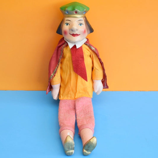 Vintage 1950s Punch & Judy King Hand Puppet - German Paper Mache