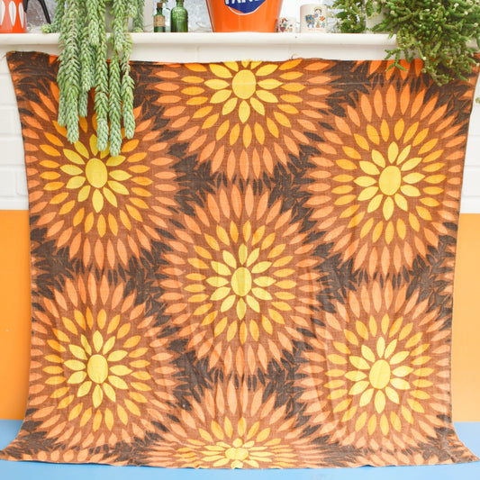 Vintage 1960s Barkcloth Fabric - Orange & Brown Flower