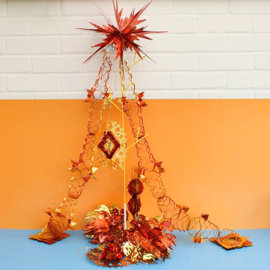 Vintage 1970s Foil Christmas Decorations - Garlands/ Hangers - Red/ Gold