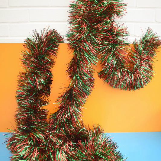 Vintage 1990s Thick Tinsel Foil Garland Decoration - Green/ Red