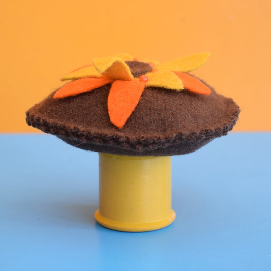 Vintage 1970s Flower / Toadstool Pin Cushion - Orange, yellow & Brown