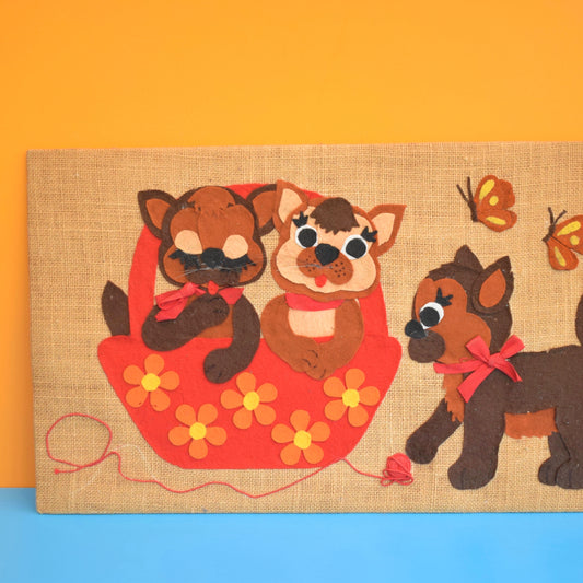 Vintage 1960s Felt Collage / Picture - Cats / Kittens