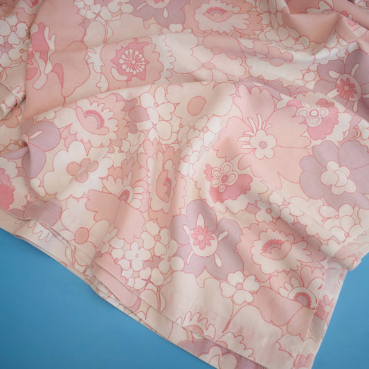 Vintage 1970s Flat Sheet & Pillow Cases M&S - Flower Power - Pink / Green