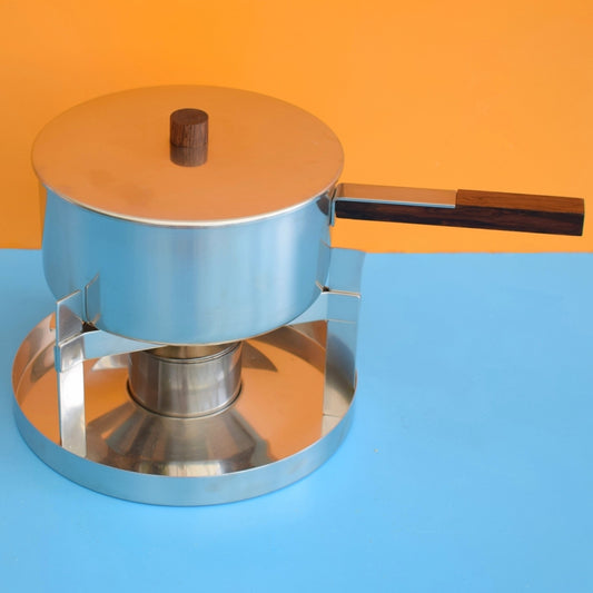 Vintage 1960s Stainless Steel Stelton Danish Fondue Set - Cylinder Line