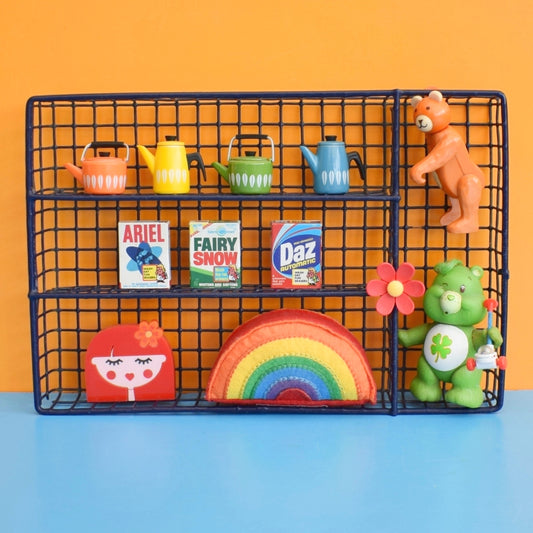 Vintage 1960s Small Wire Display Shelf / Cutlery Tray - Blue