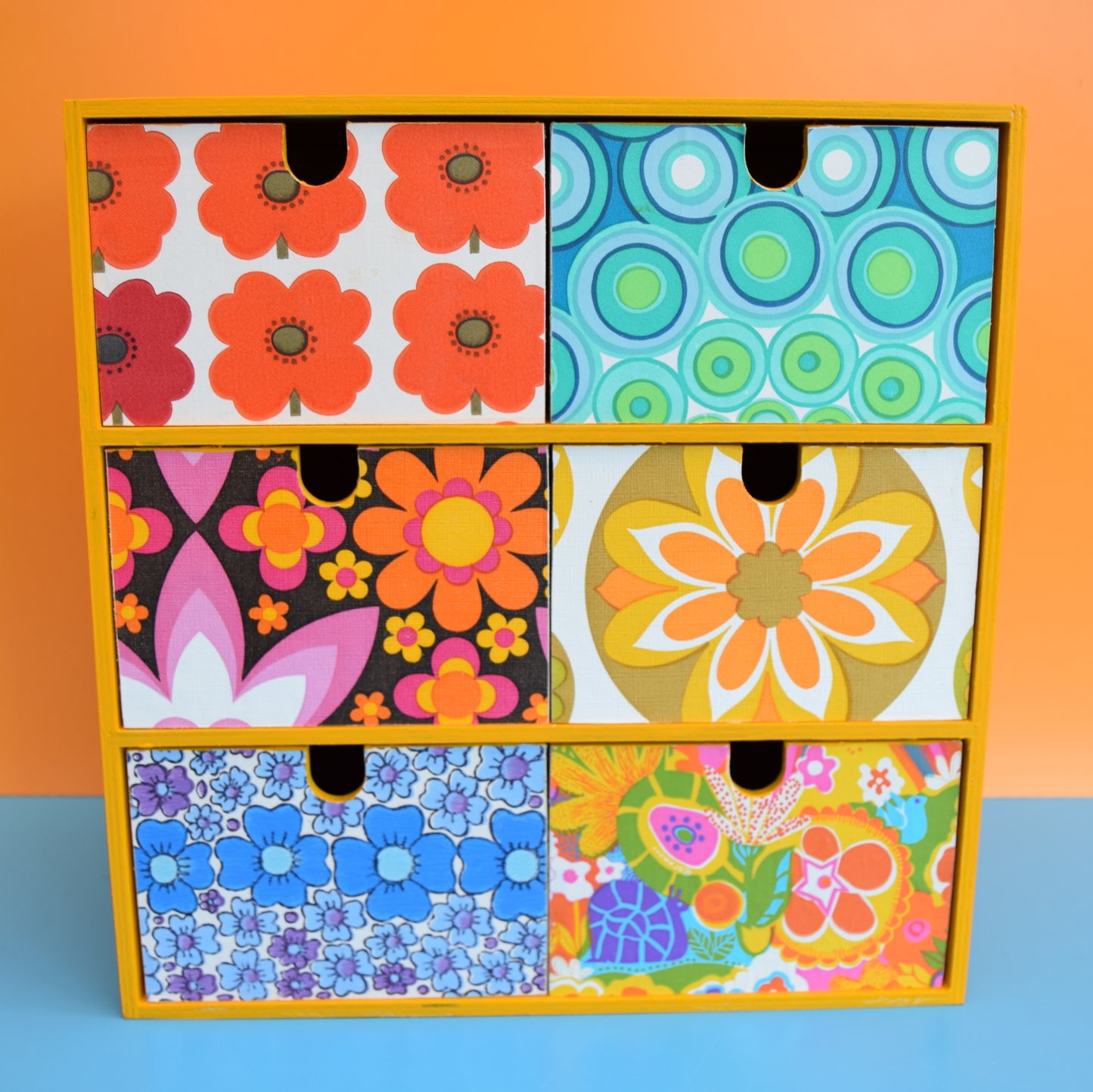 Small Wooden Drawer Unit - Vintage Wallpapers - Patchwork