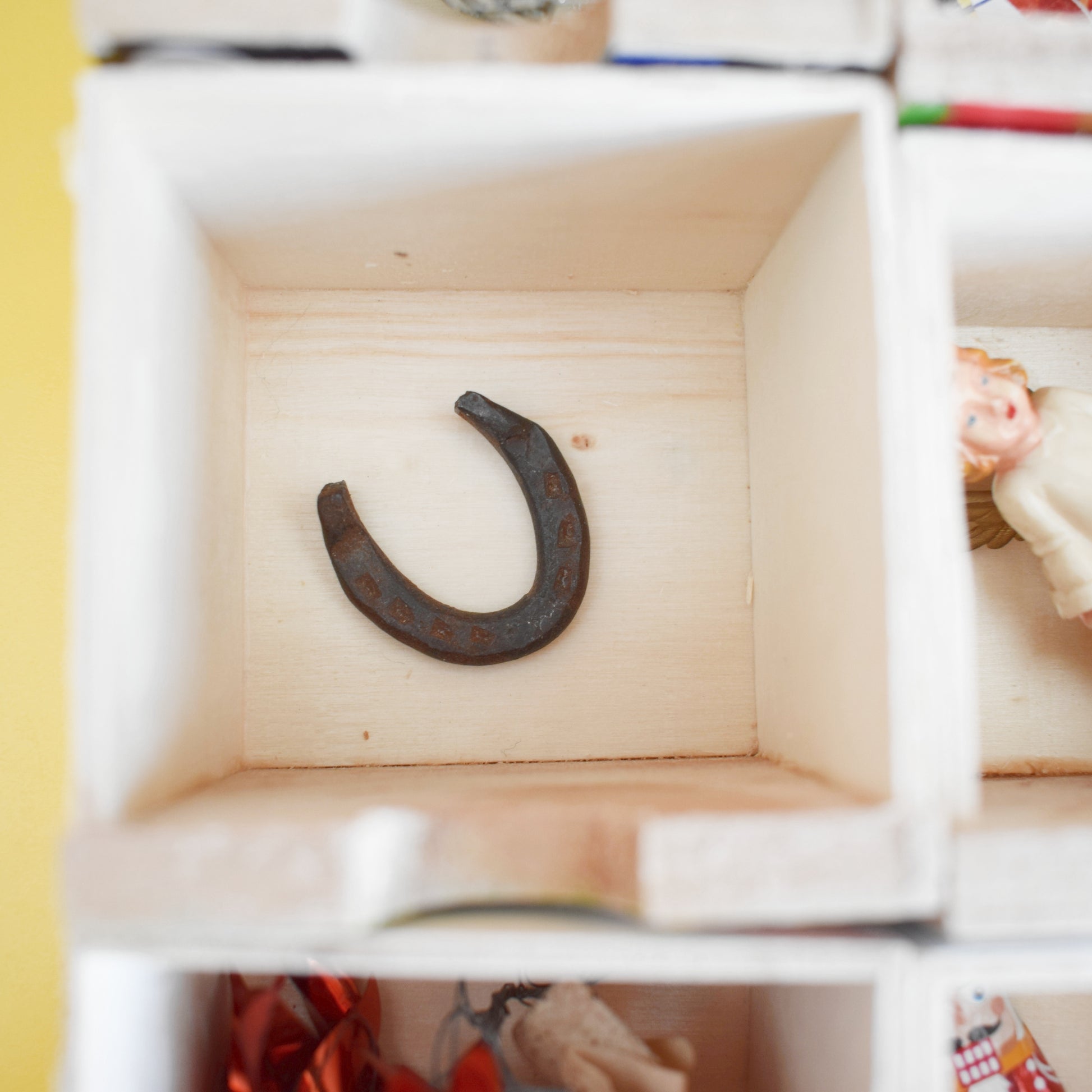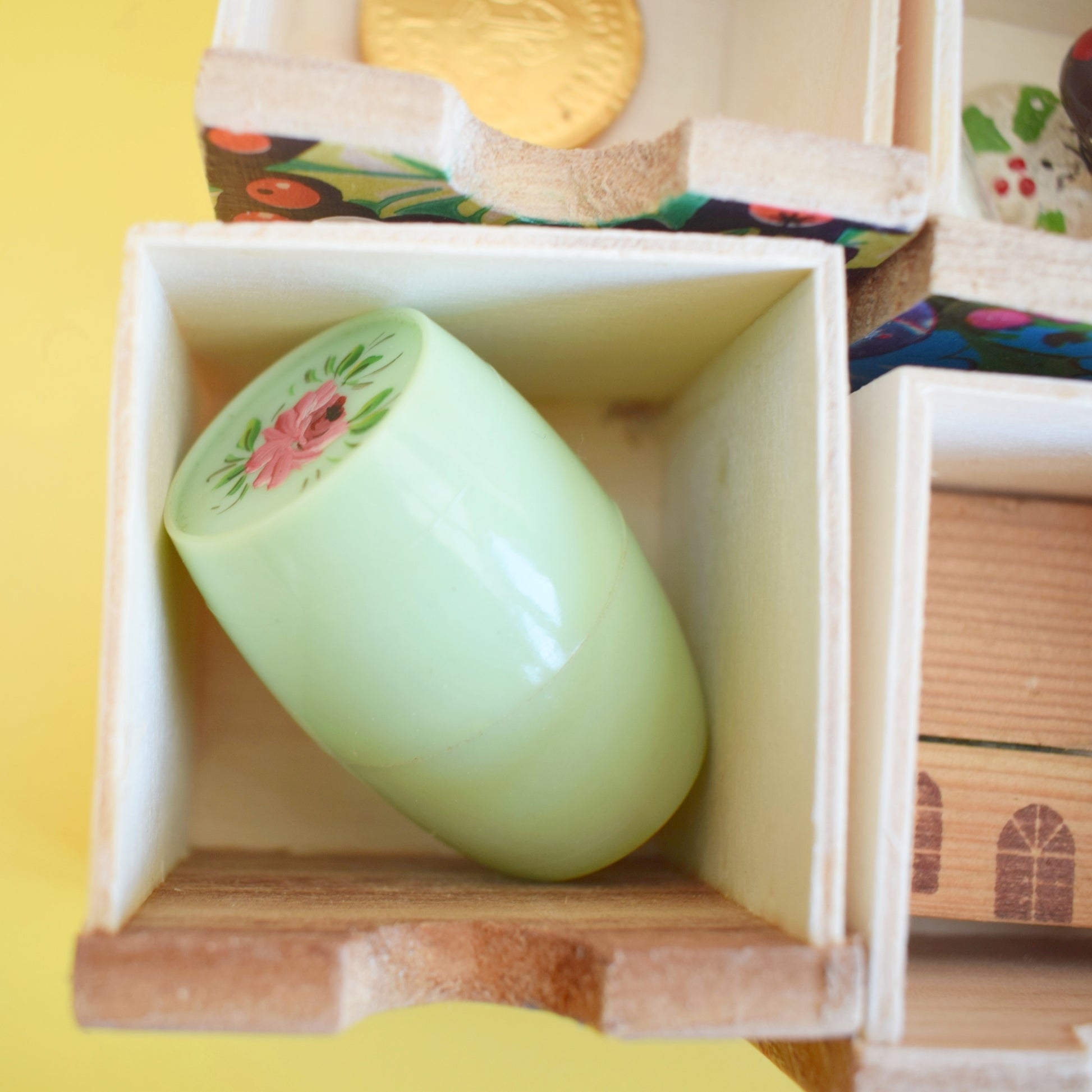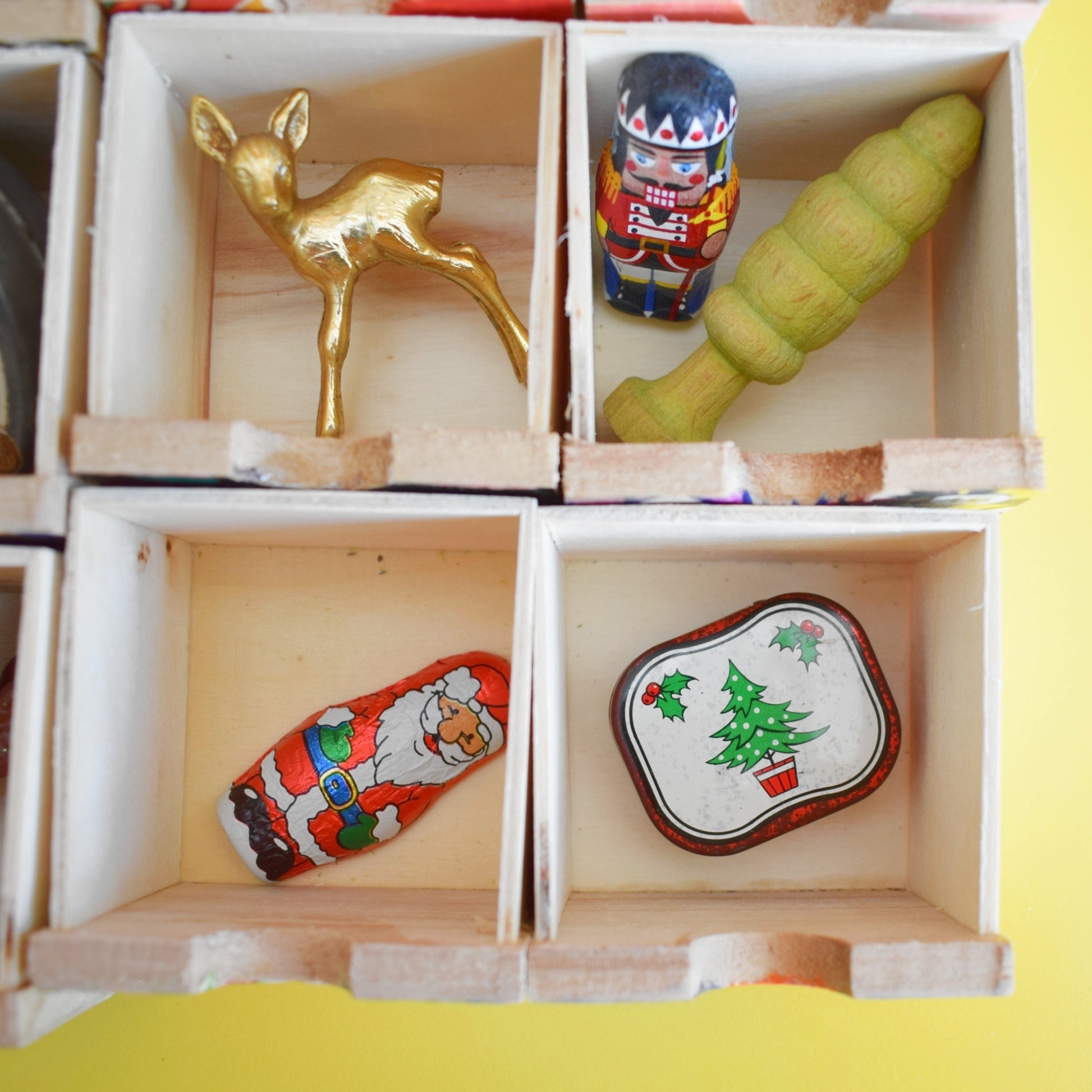- Features Unique, handcrafted, limited edition piece; each drawer holds a tiny vintage trinket and a few edible treats (wrapped); reusable each year.