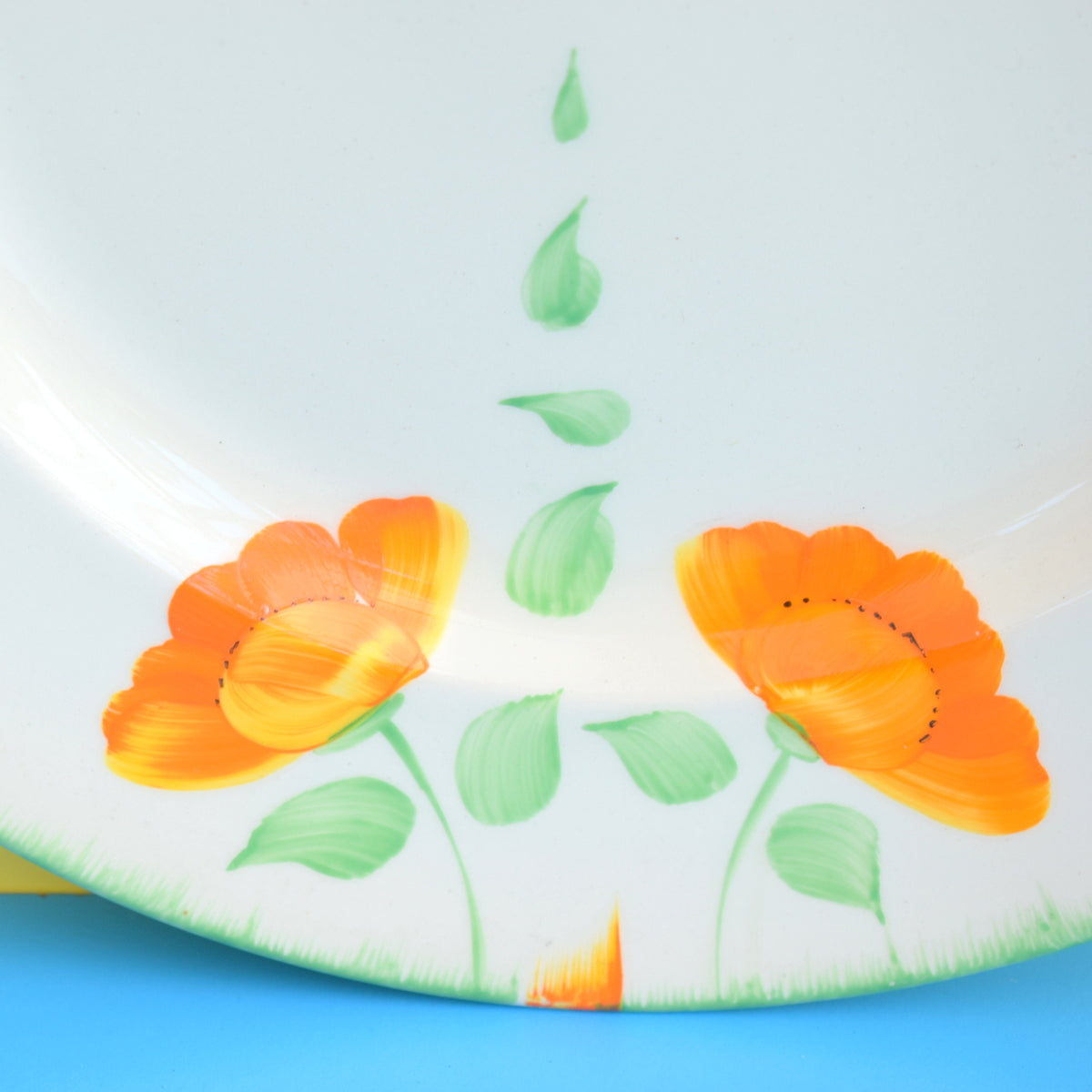 Vintage 1930s Hand Painted Flower Dinner Plates x4 - Orange & Green