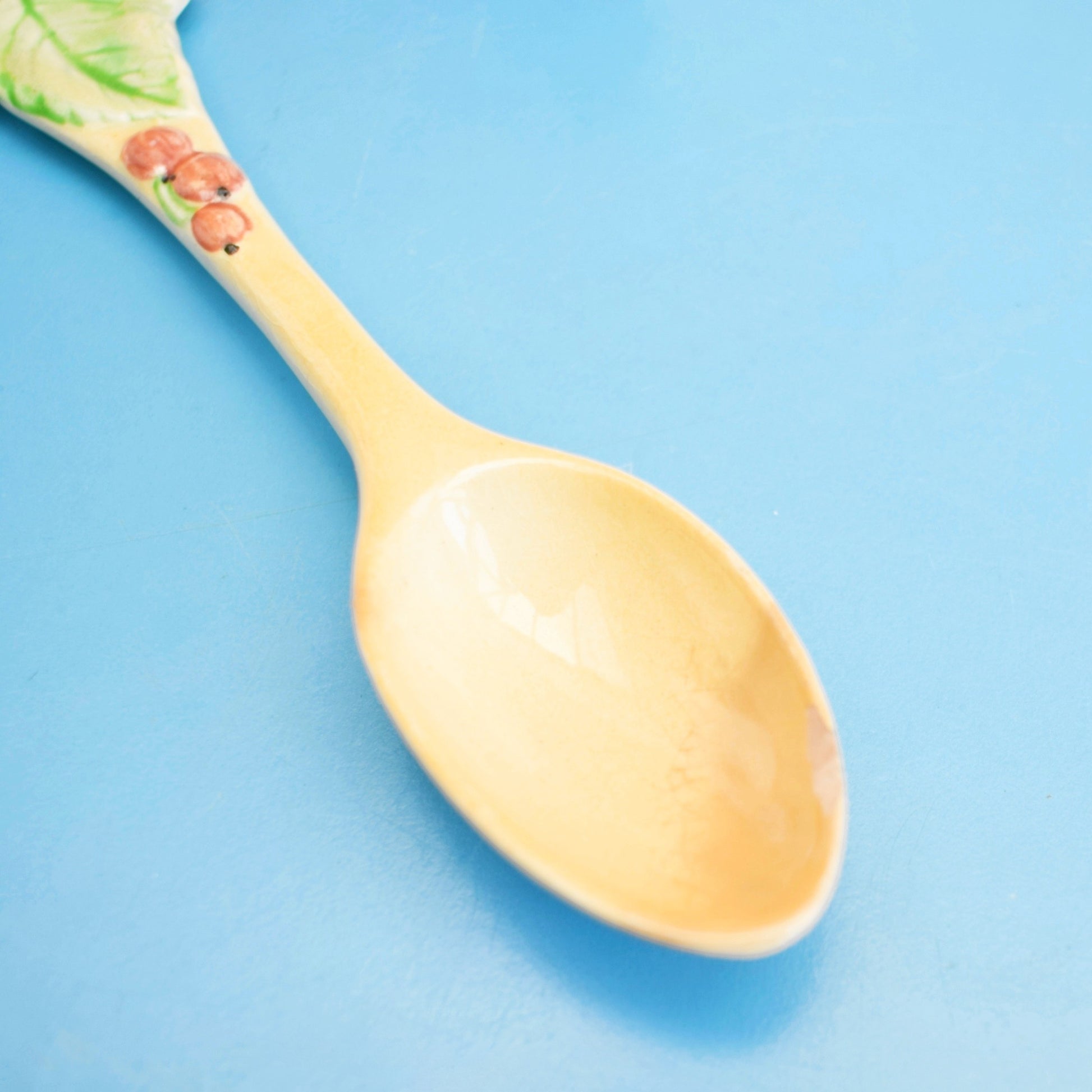 Authentic 1940s Carlton Ware Redcurrant dish and matching spoon — a boxed, collectible piece of mid-century English pottery perfect for collectors and vintage-lovers seeking a decorative serving item with charming hand-painted detail.