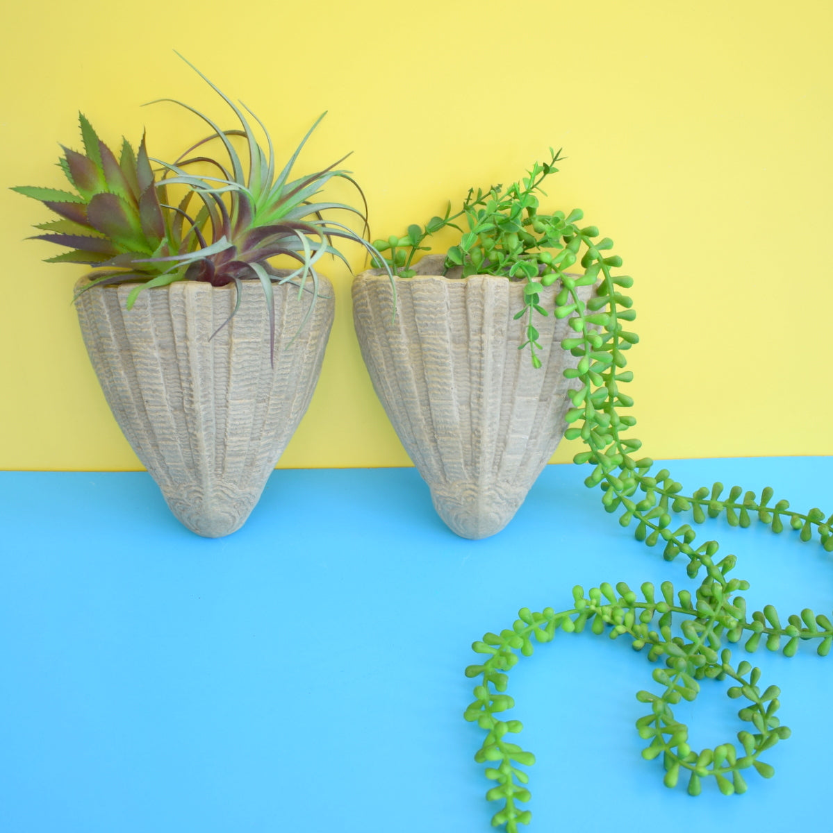 Vintage 1940s Vitory Ware Ceramic Plant Wall Pocket Pair - Natural Colour