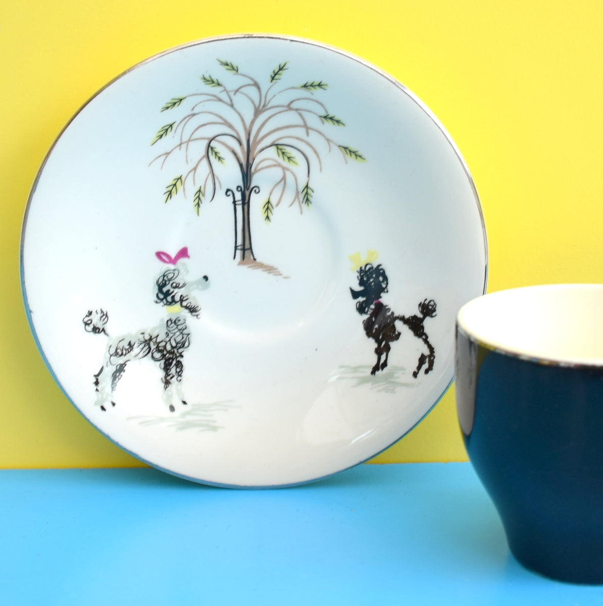 It has a poodle design, of a black and a grey poodle (please note the firing fault which has missed part of the black poodles body off.