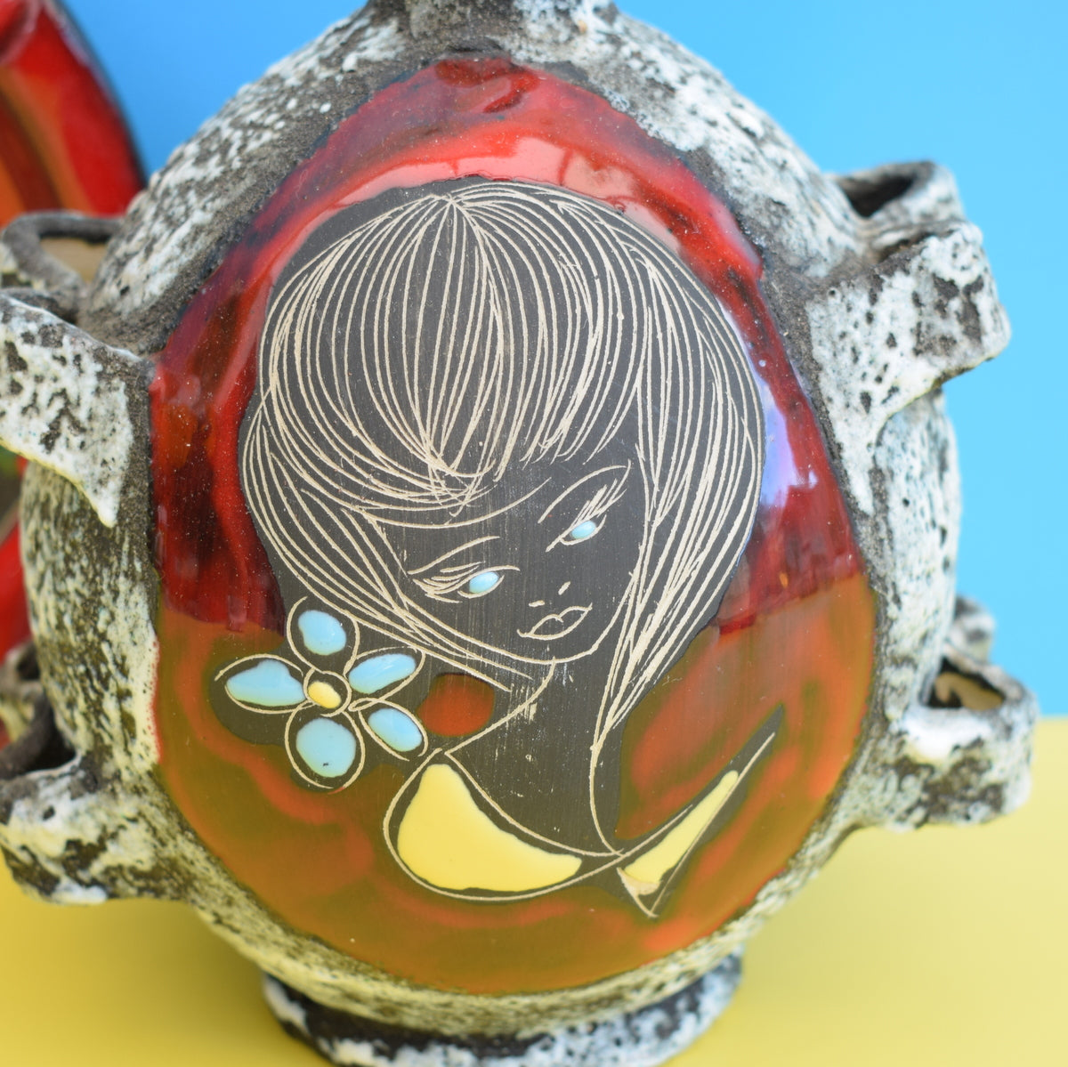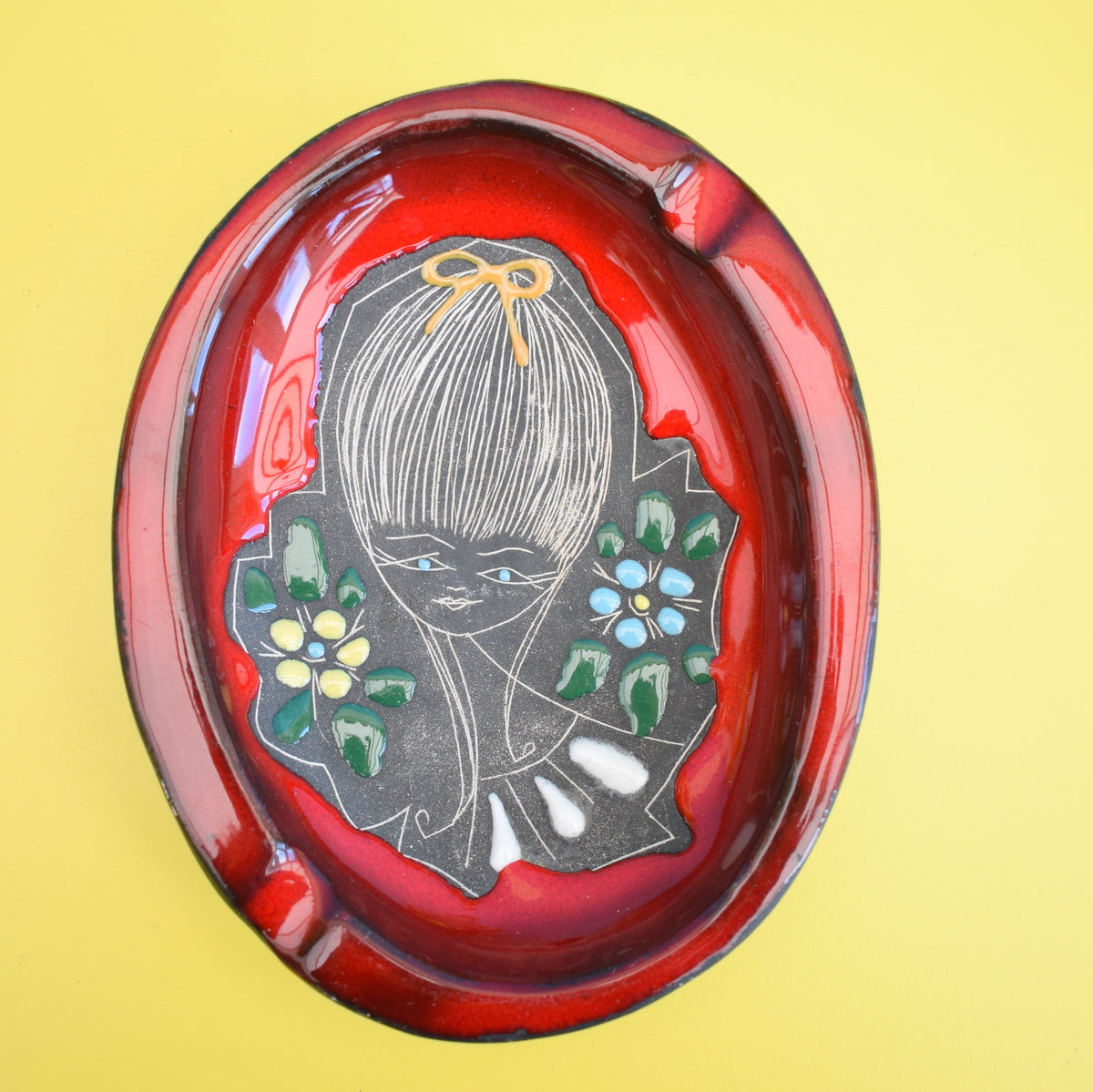 Vintage 1950s Ceramic Bottle / Dish - San Marino - Italian Pottery - Red