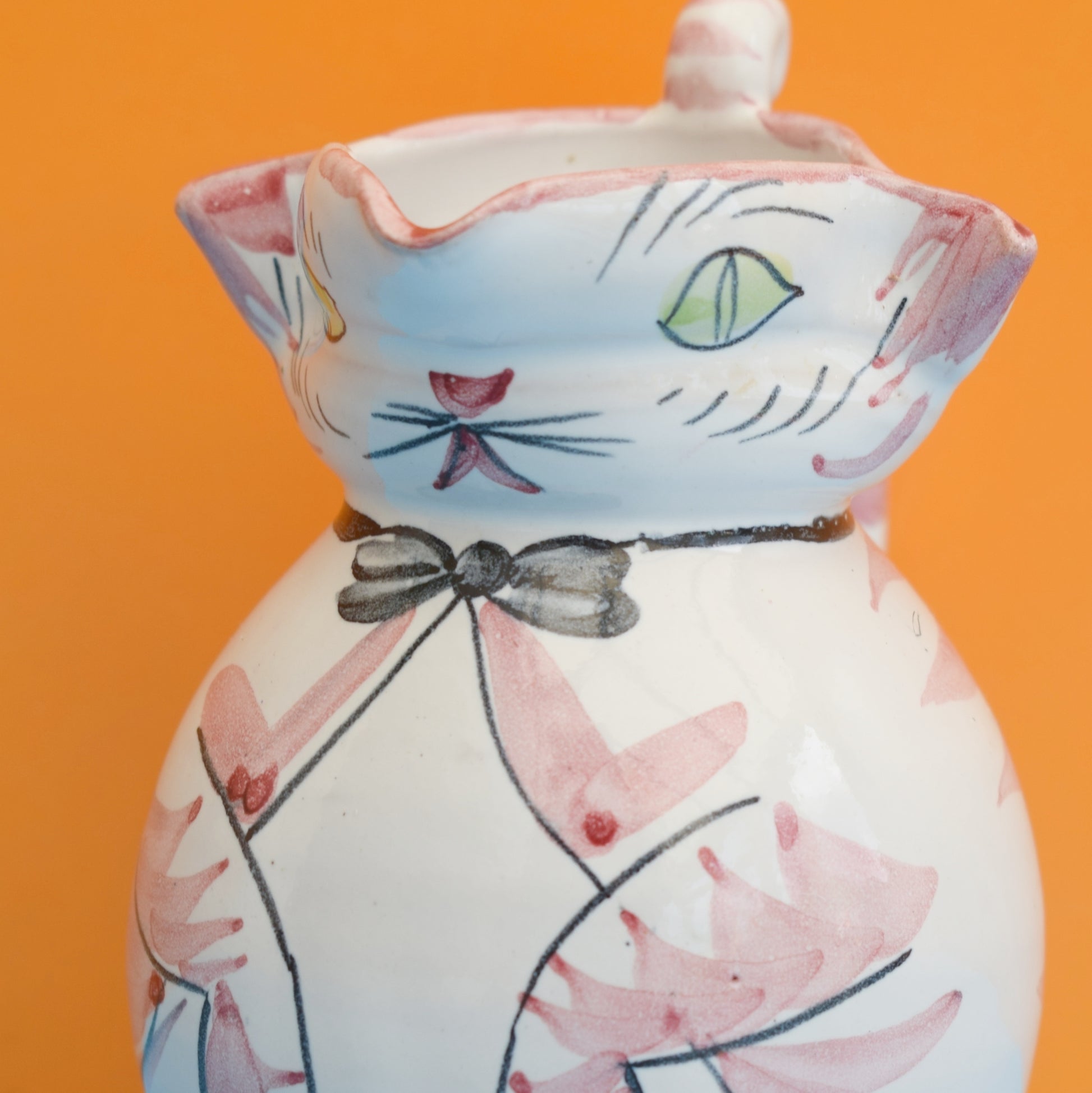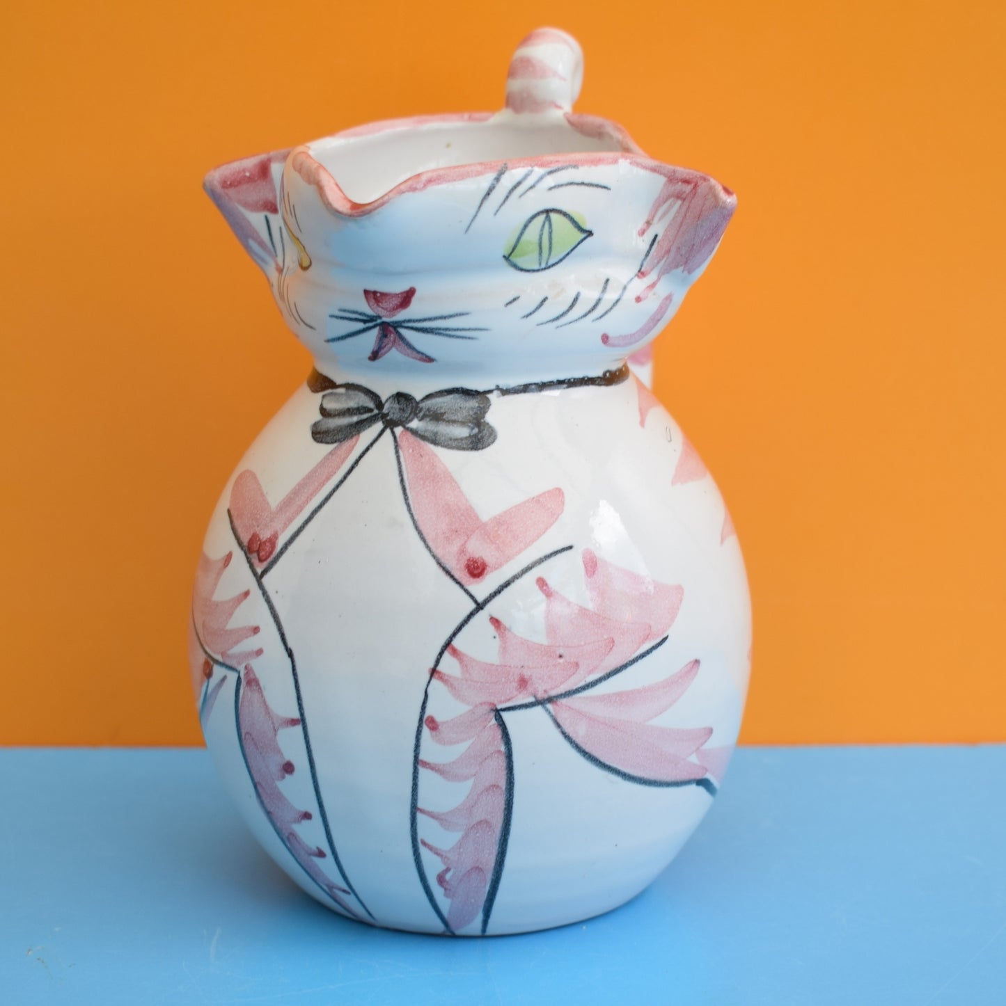Vintage 1950s Ceramic Pink Cat Jug - Italian ?