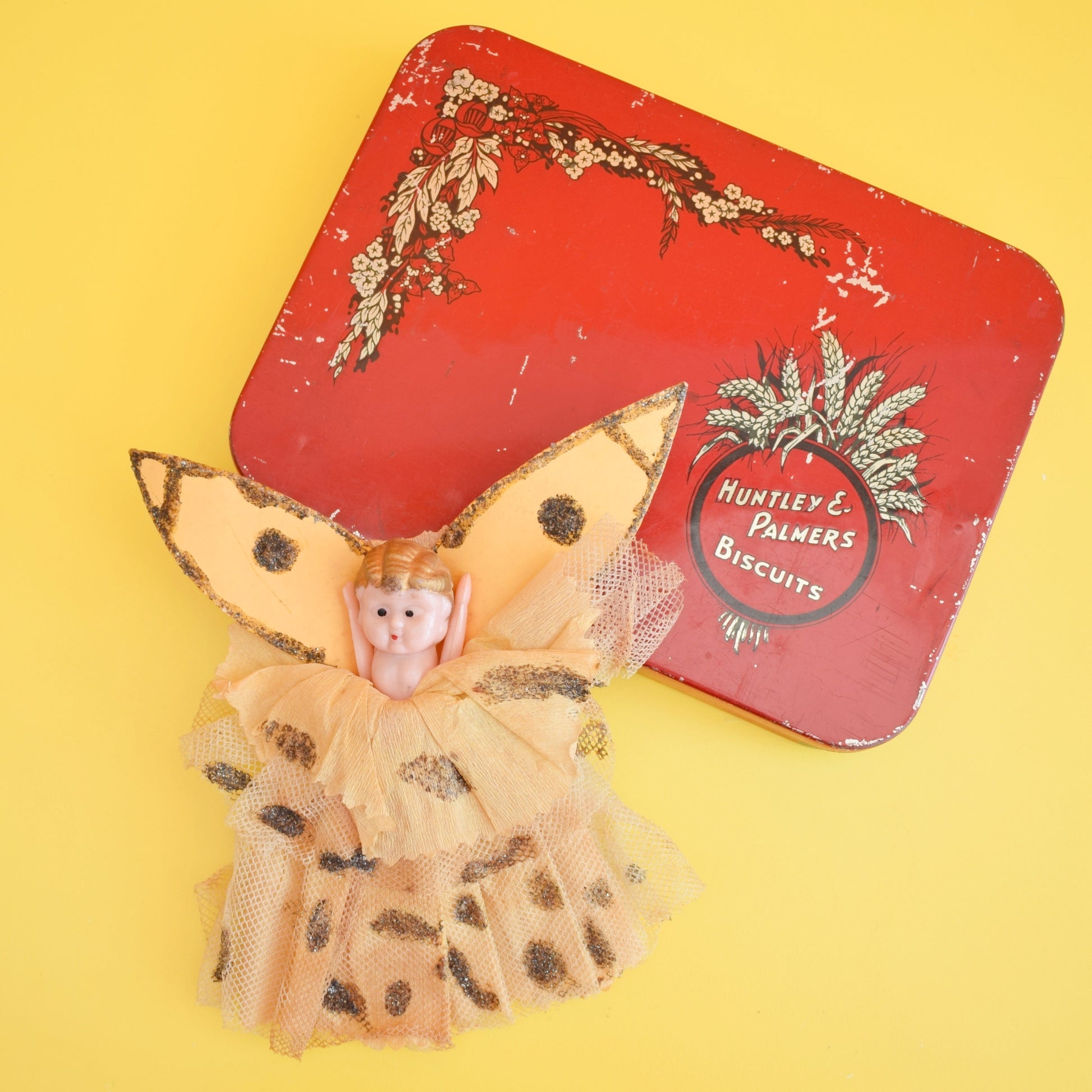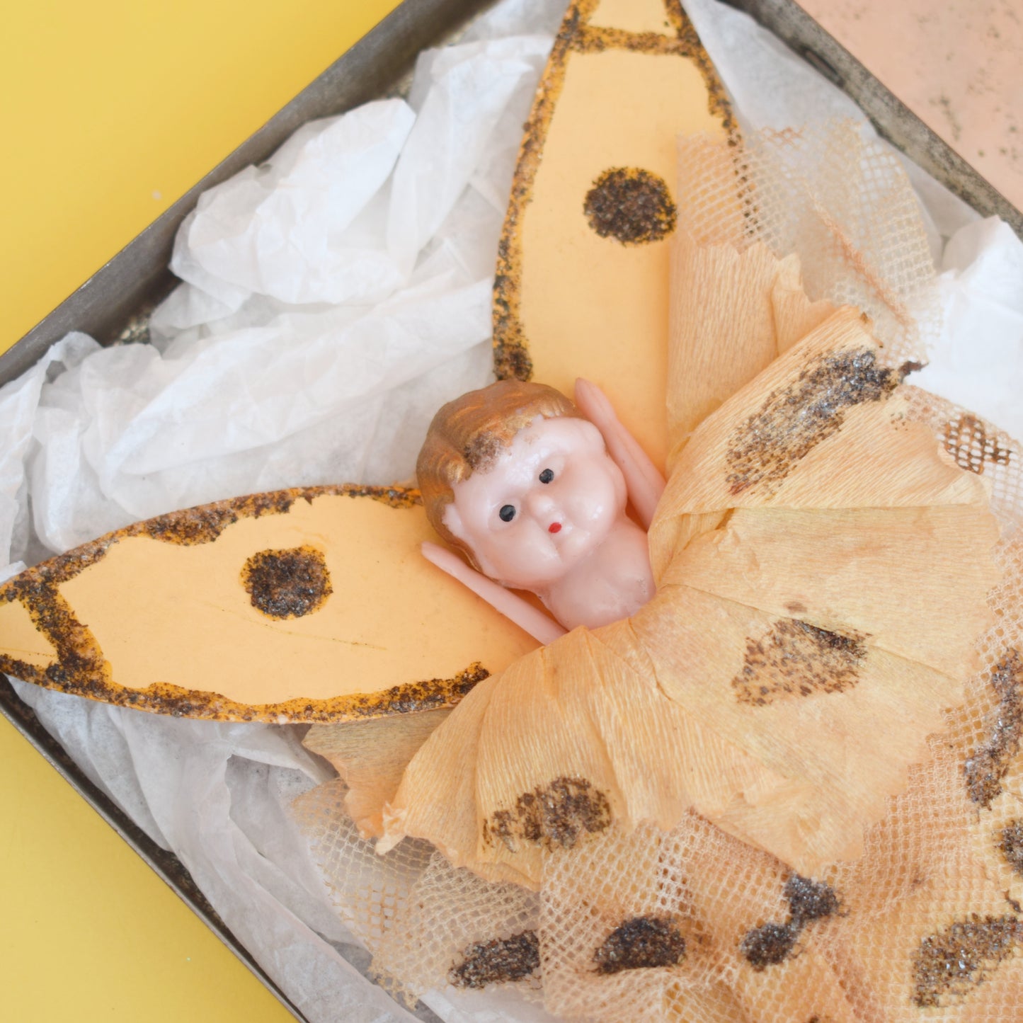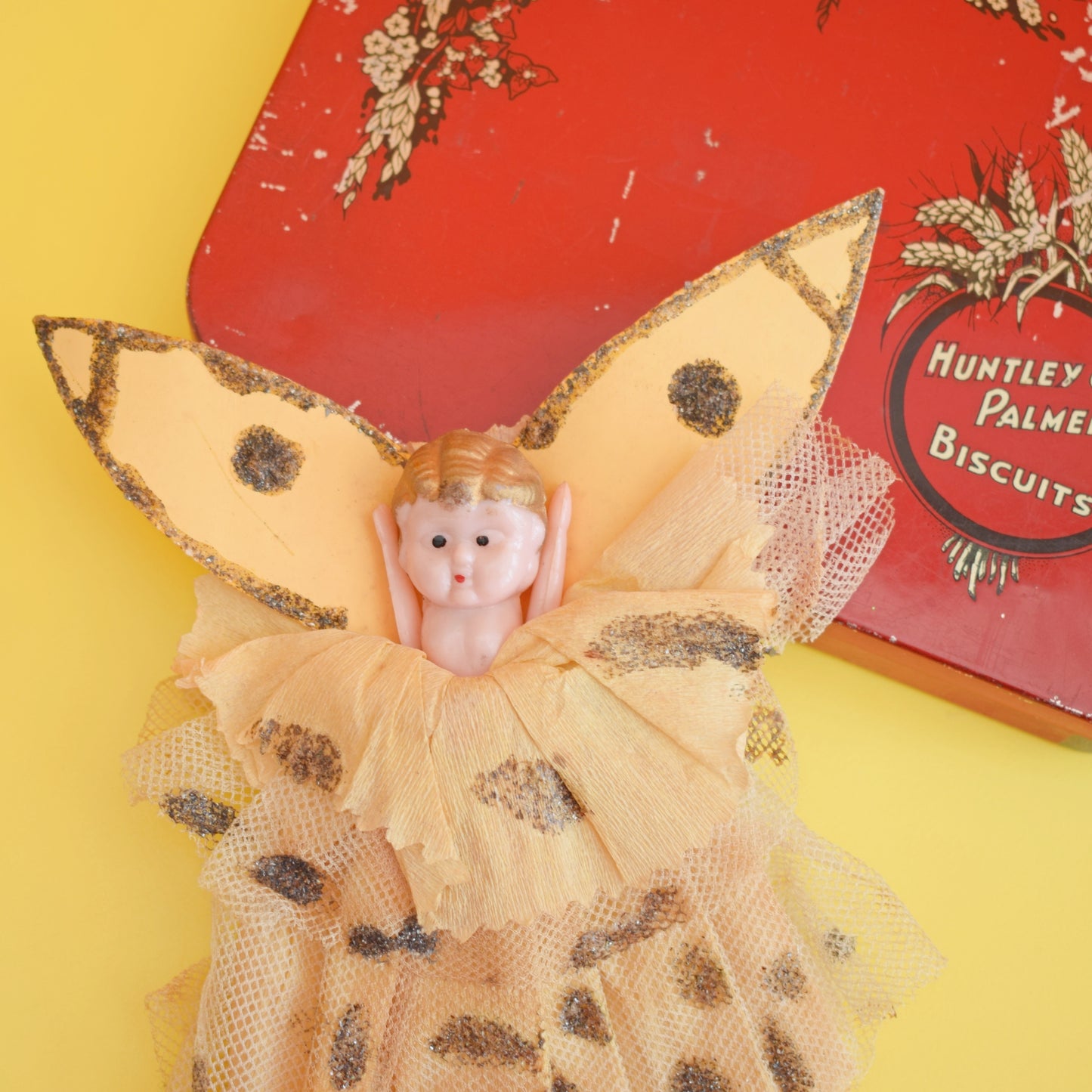 This is a lovely christmas fairy, with cardboard wings and crepe/ net dress