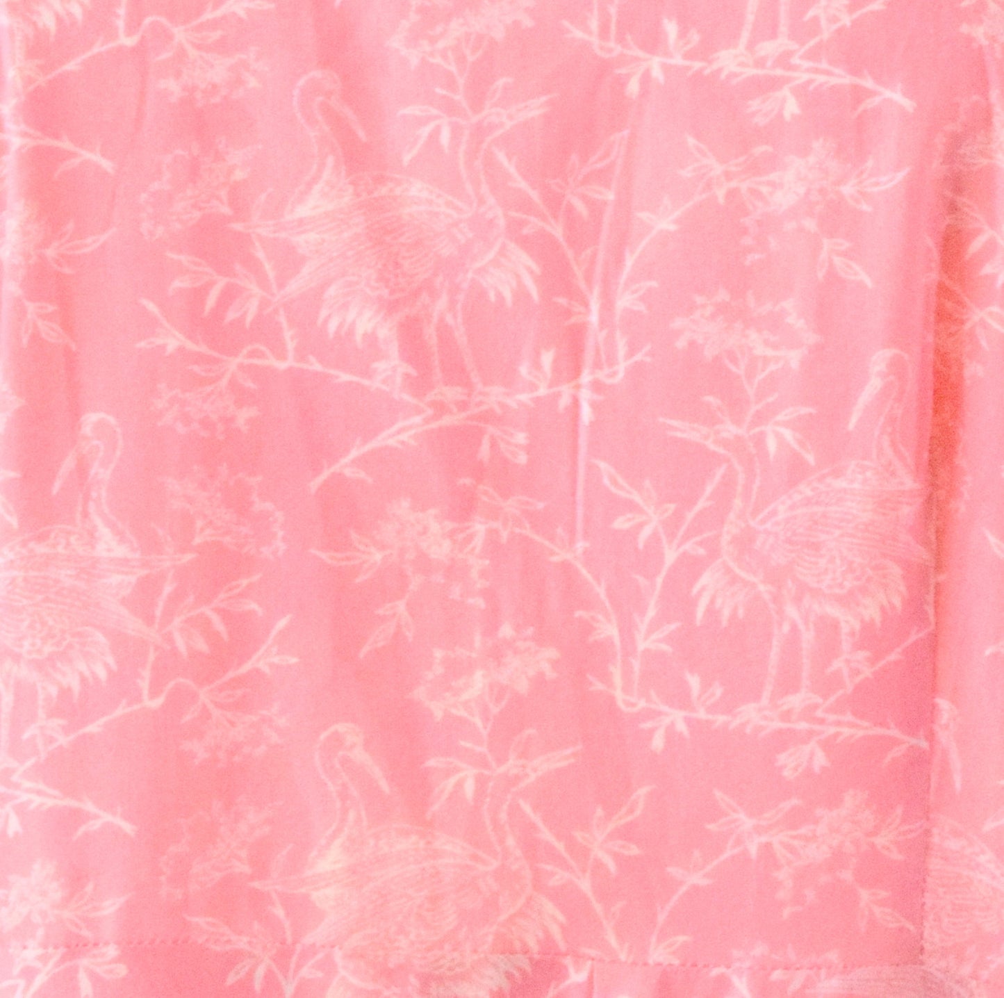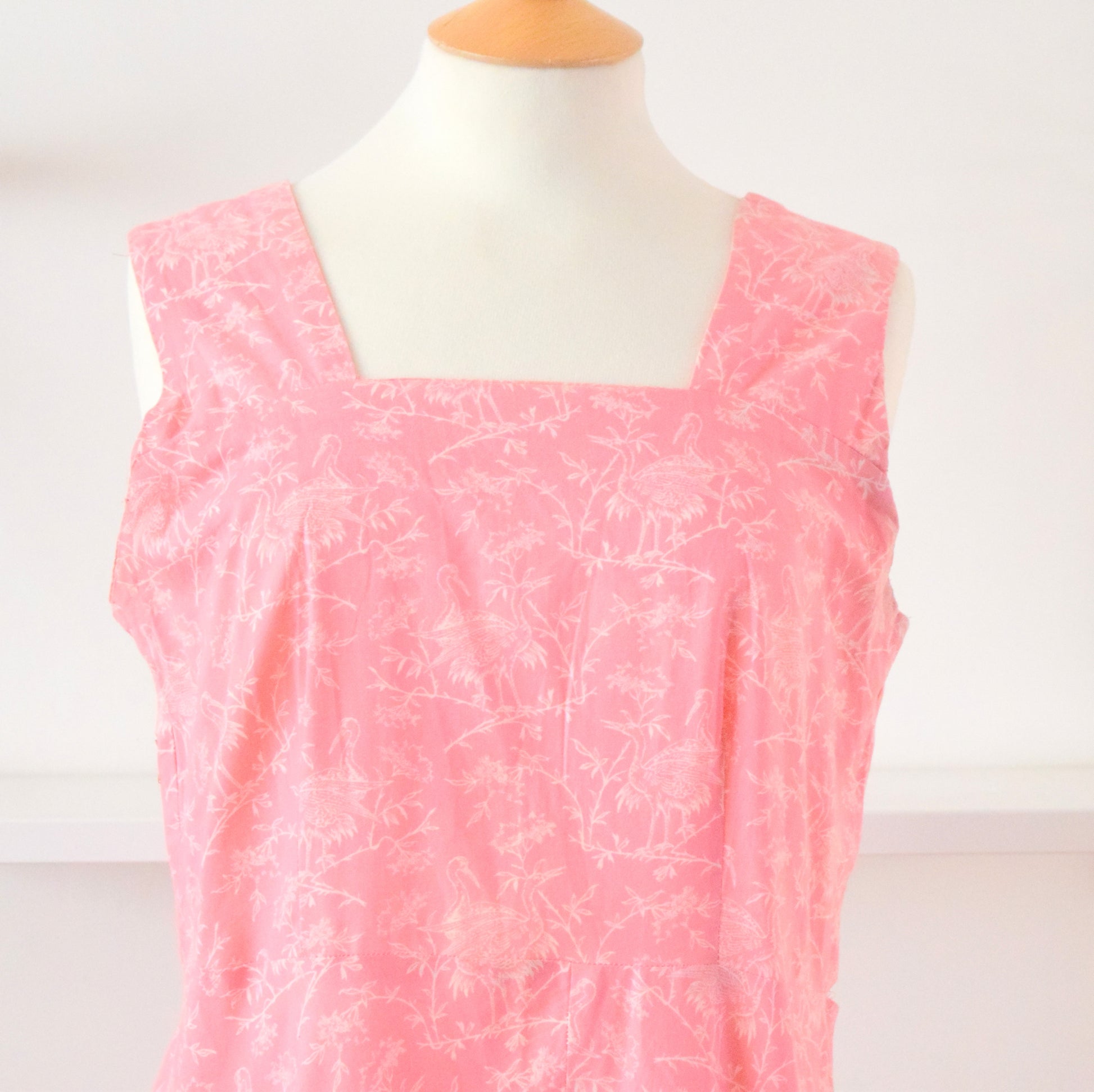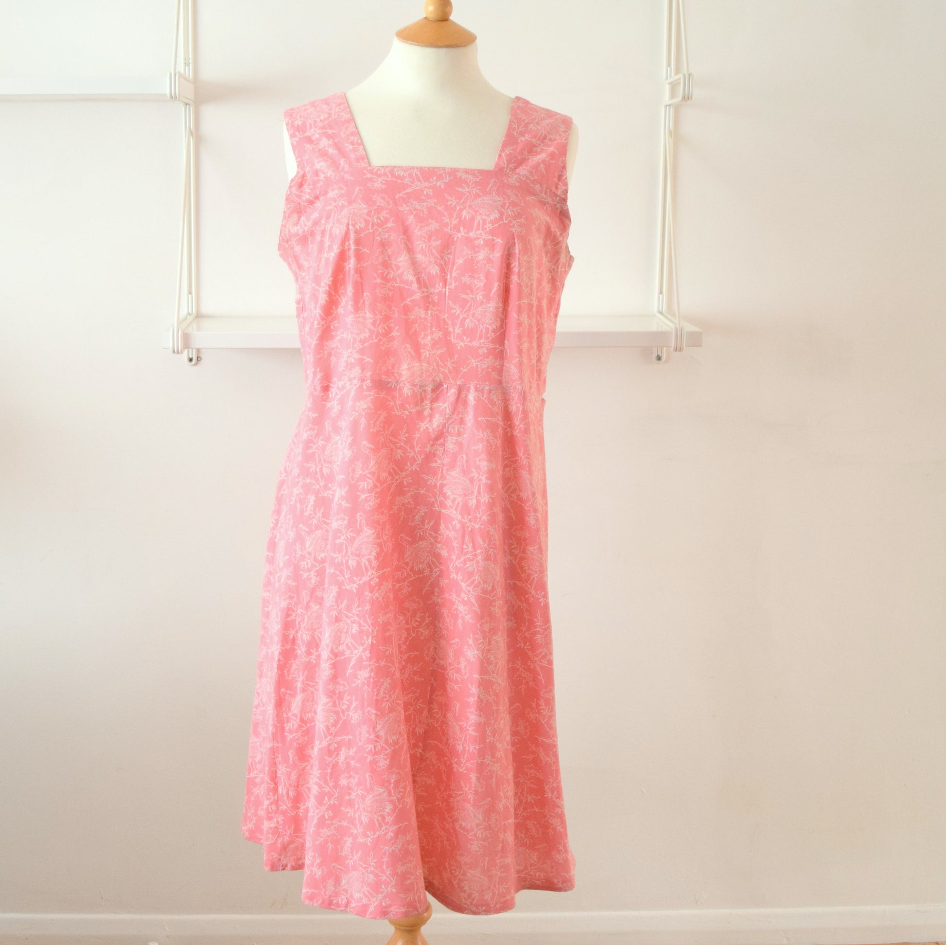 Vintage 1950s Cotton Fit & Flare Dress - Pink & White Bird Print sz 14