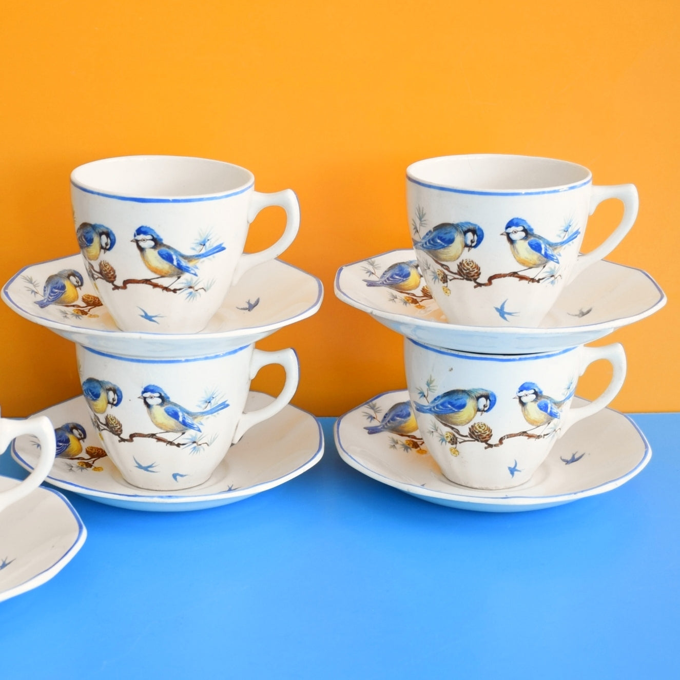 Vintage 1950s Cups & Saucers - Blue Tits & Bluebirds - Blue Bird - Ivory Ware