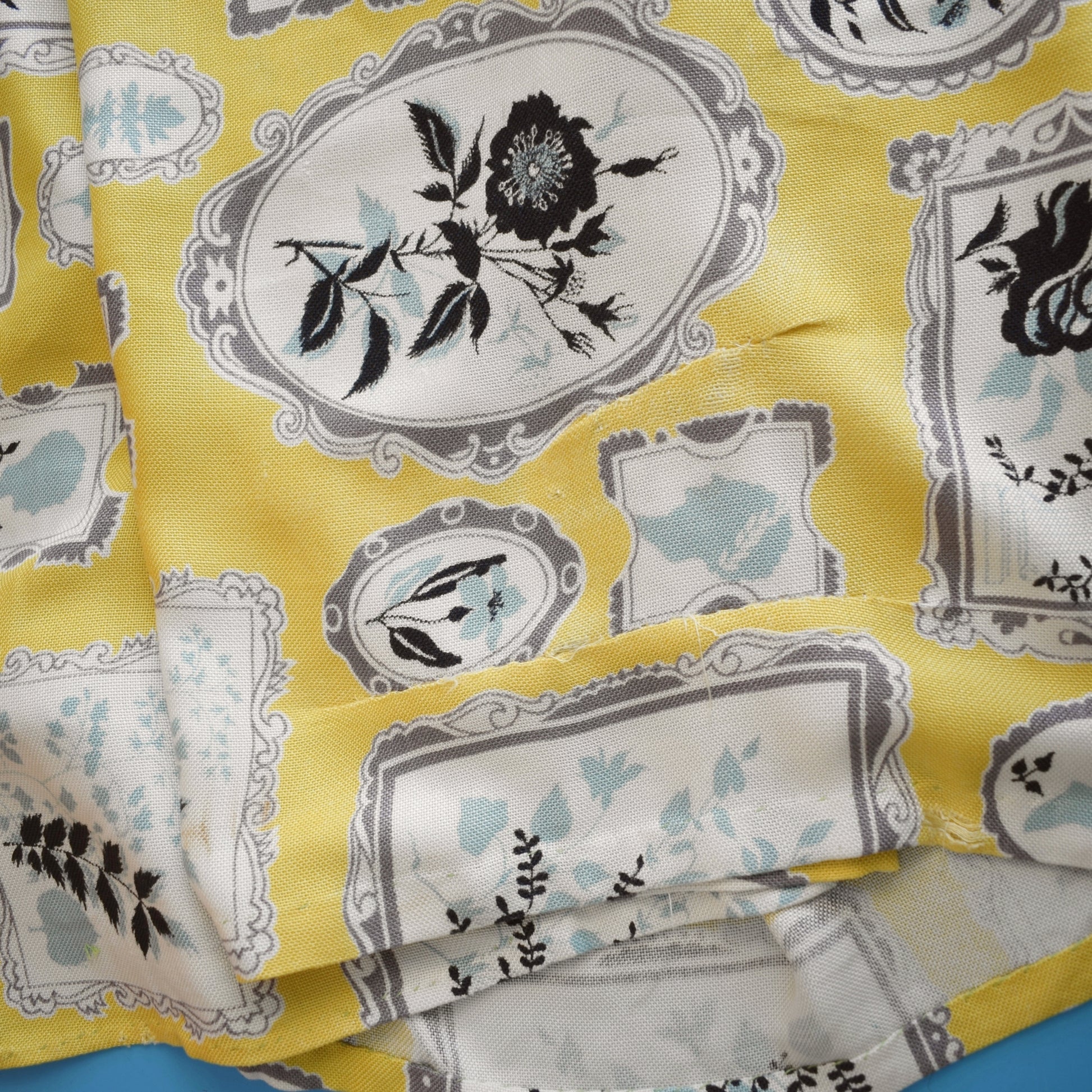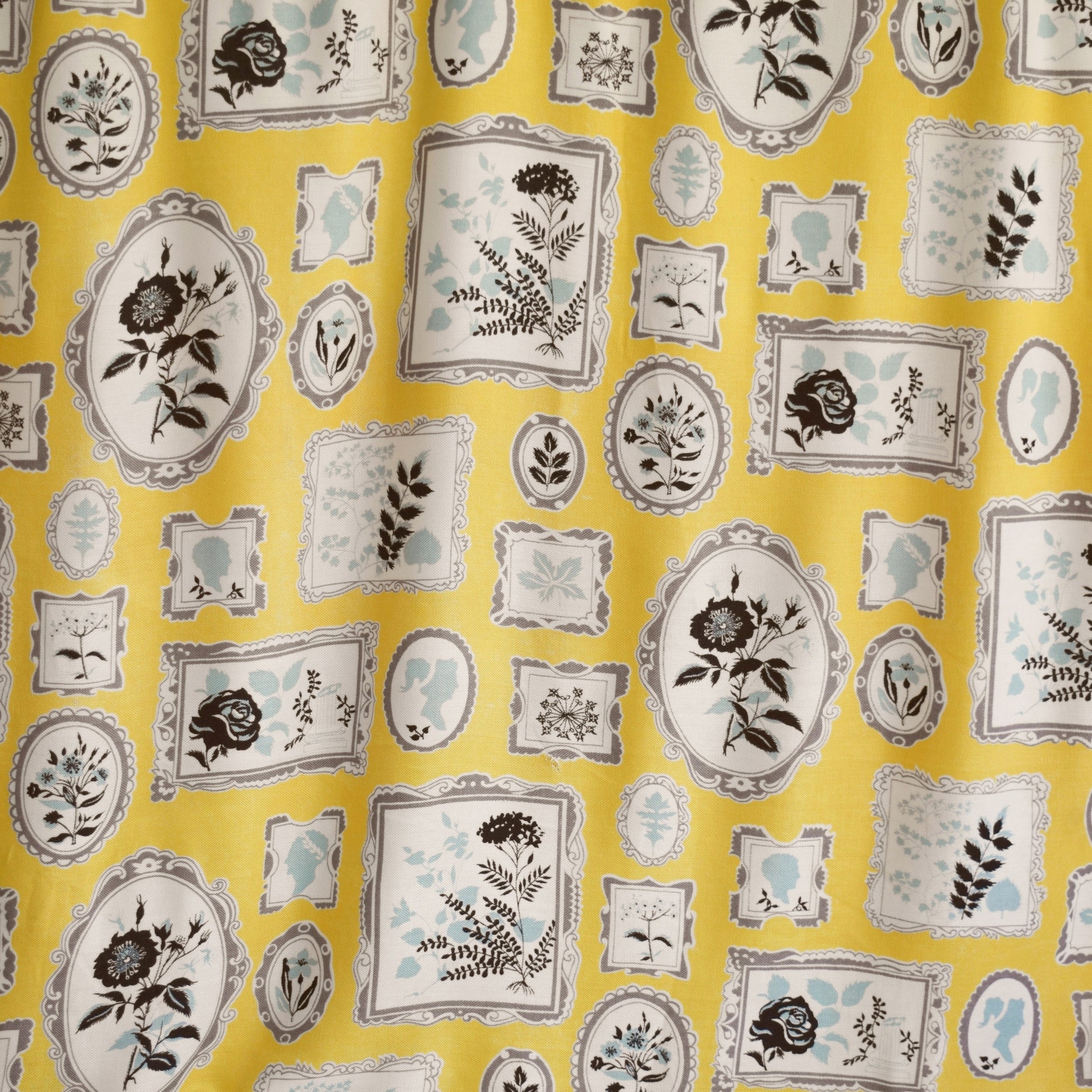 Vintage 1950s Curtains - Rayon Mix - Yellow / Grey Picture Frames