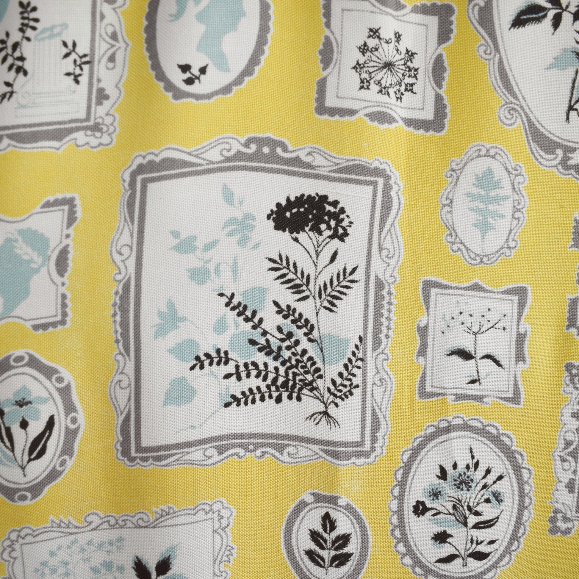 Styling tips: pair the cheerful yellow with warm woods and brass for a true 1950s feel, or use the restrained grey motif to ground contemporary interiors. Great for restorations, theatrical costume work, or craft-based small-batch production.
